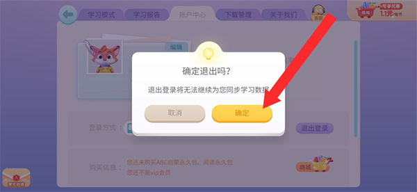3、進(jìn)入賬戶中心,需要點(diǎn)擊退出登錄,彈出確認(rèn)提示。