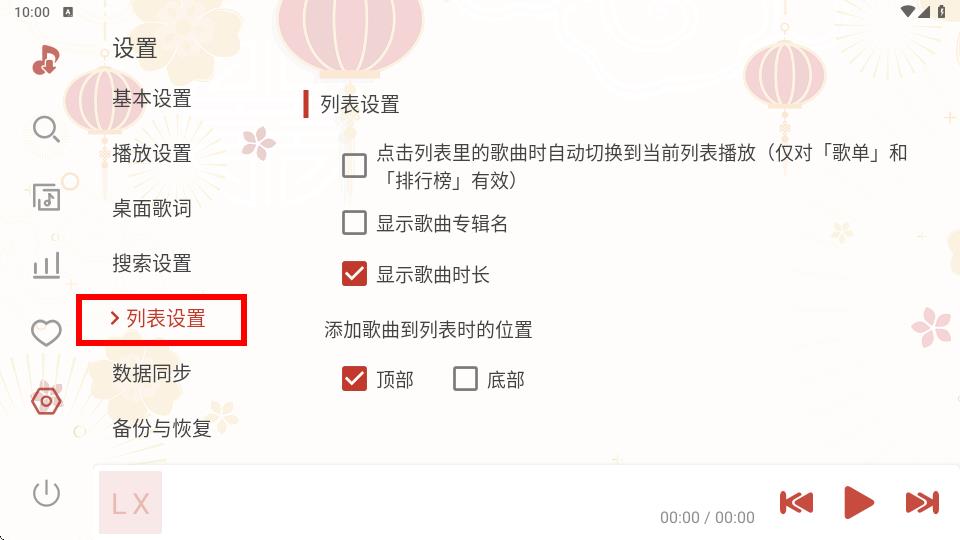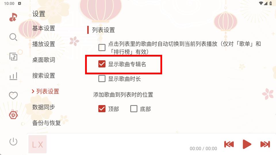 3、在列表設(shè)置界面中找到顯示歌曲專輯名選項(xiàng),勾選該選項(xiàng)后,即可在軟件中顯示歌曲專輯名稱。