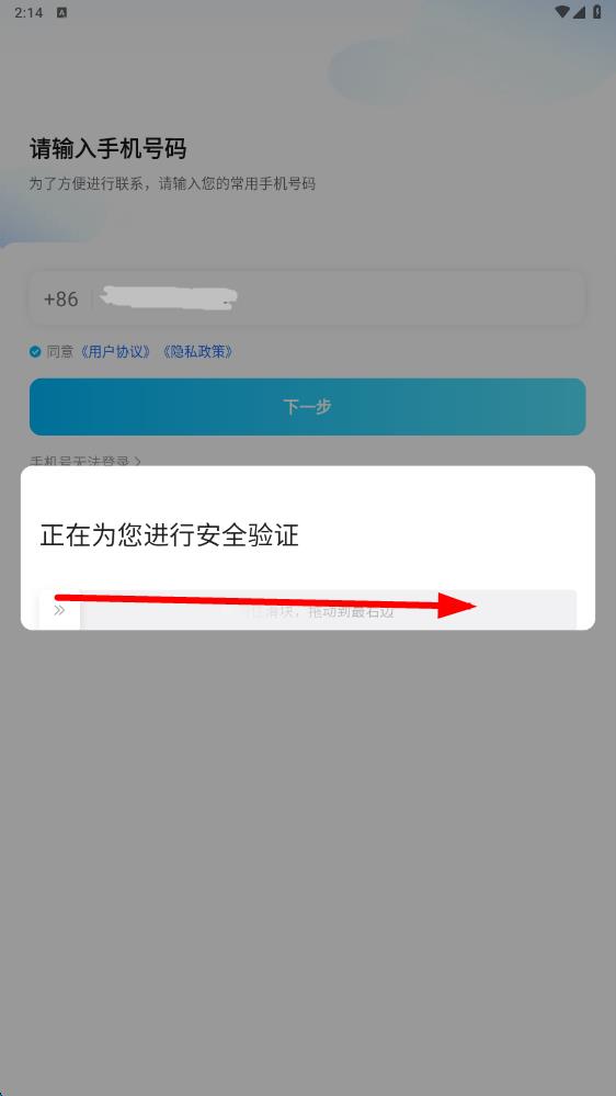 3、點(diǎn)擊“下一步”,彈出“正在為您進(jìn)行安全驗(yàn)證”提示,拖動(dòng)驗(yàn)證滑塊完成安全驗(yàn)證,推進(jìn)注冊流程。