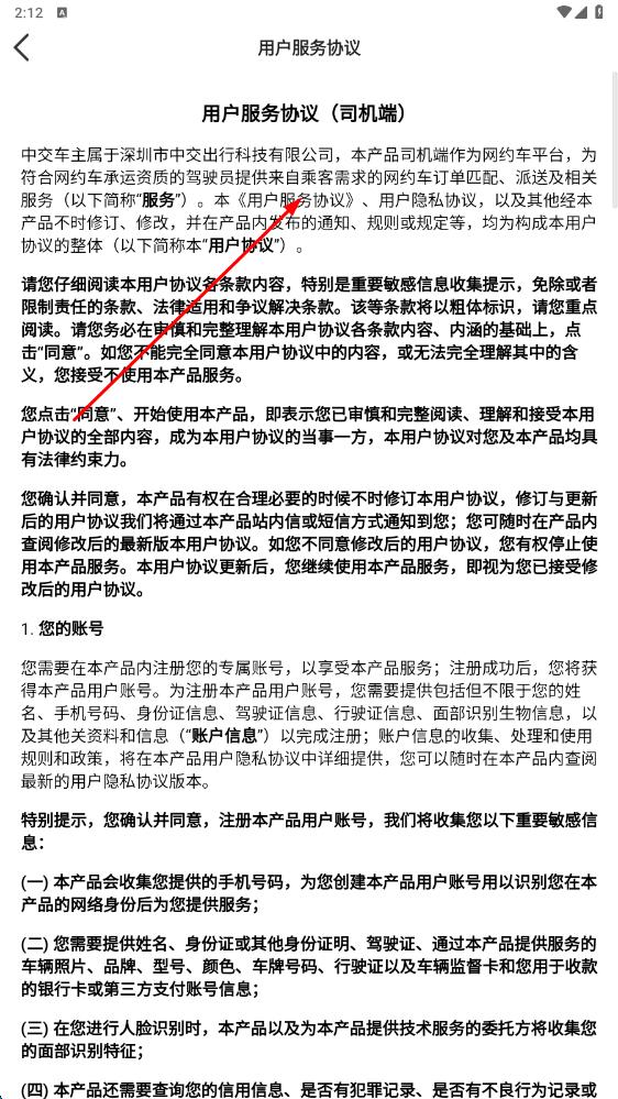 1、進(jìn)入司機(jī)端注冊頁面,先仔細(xì)閱讀用戶服務(wù)協(xié)議(司機(jī)端)內(nèi)容,確認(rèn)無異議后,準(zhǔn)備進(jìn)行后續(xù)操作。