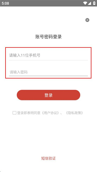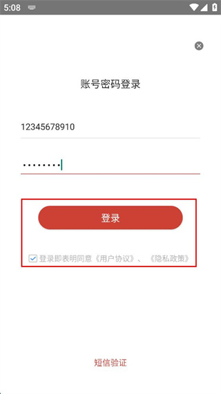 3、在賬號密碼登錄界面輸入手機號和密碼,準備進行登錄操作。
