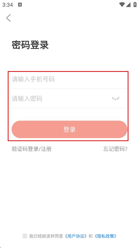 4、輸入手機(jī)號碼,接著輸入密碼,勾選同意協(xié)議,最后點(diǎn)擊“登錄”按鈕,即可完成登錄操作。
