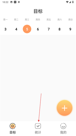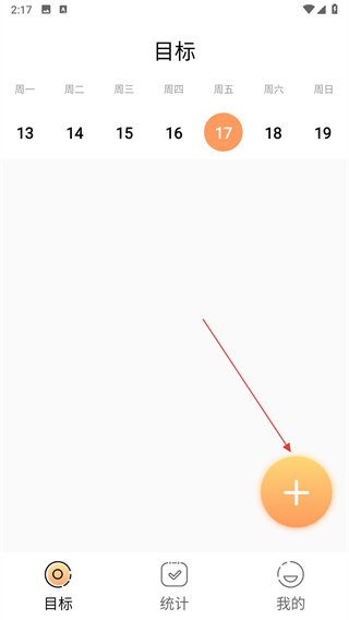 1、打開打卡時間規(guī)劃APP,進入目標頁面,點擊右下角橙色加號按鈕,進入新建目標界面。