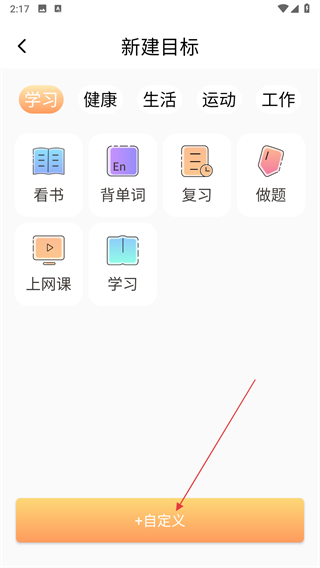 2、在新建目標界面,點擊底部+自定義按鈕,進入自定義目標設置頁面。