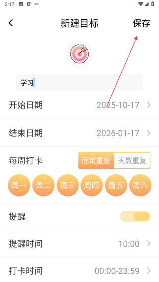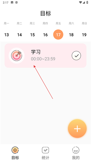 4、保存后返回目標頁面,即可看到創(chuàng)建好的目標卡片,后續(xù)可在對應時間進行打卡。