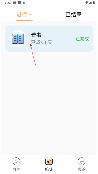 2、在統(tǒng)計頁面,找到并點擊進行中的目標。