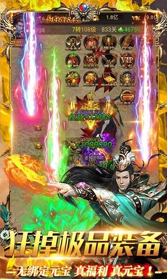 3、首充豪禮:充值任意金額即可領(lǐng)取高達(dá)10倍元寶返利,更有傳世裝備,限定時(shí)裝,80級(jí)直升丹