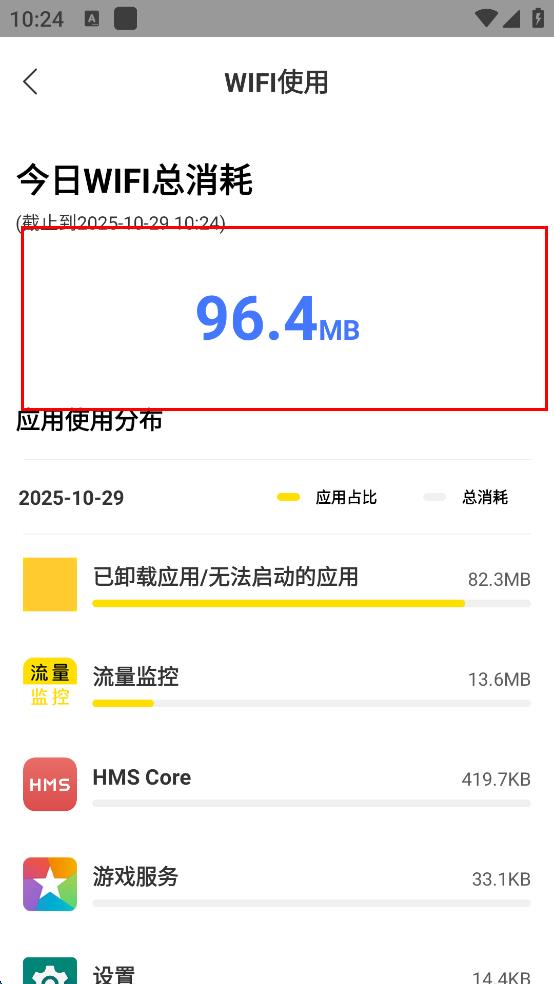 3、查看今日WIFI總消耗數(shù)據(jù)。