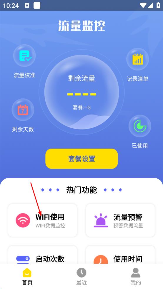1、在軟件首頁(yè)點(diǎn)擊熱門功能中的WIFI使用,進(jìn)入WIFI使用頁(yè)面。