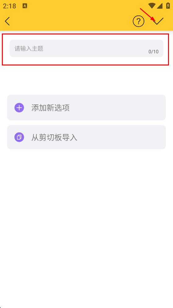 4、在新決定編輯頁面,輸入主題等信息后,點(diǎn)擊右上角確認(rèn)圖標(biāo),完成新決定創(chuàng)建。