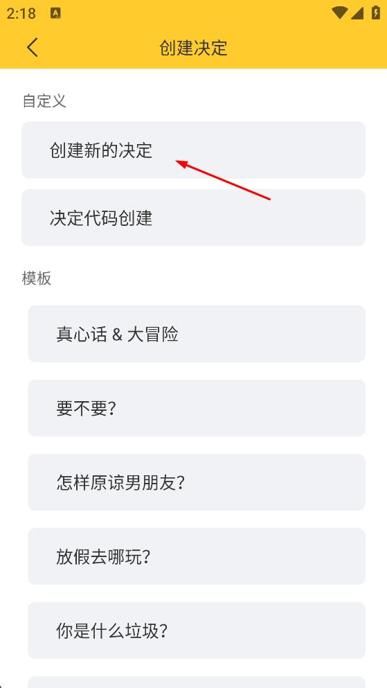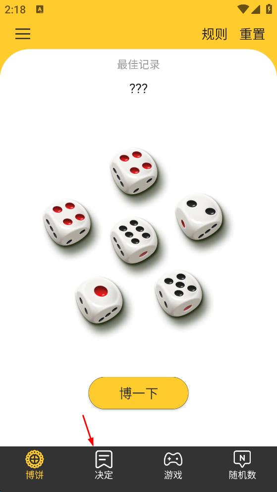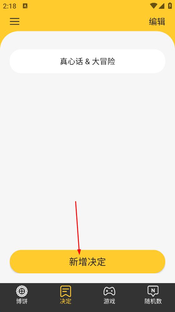 1、打開趣味決策類軟件,點(diǎn)擊頁面底部“決定”選項(xiàng),進(jìn)入決定相關(guān)頁面。