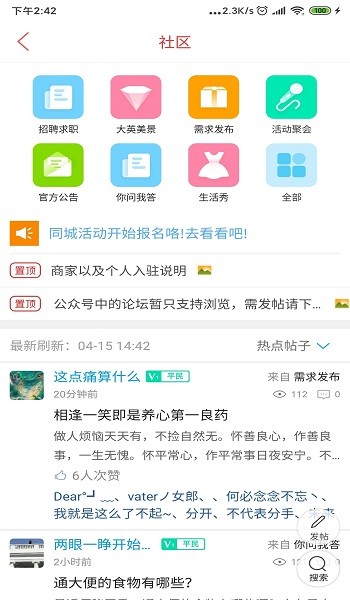 3、同城信息自主收集,求職招聘、二手轉(zhuǎn)讓、二手車和同城論壇等信息板塊這都有;