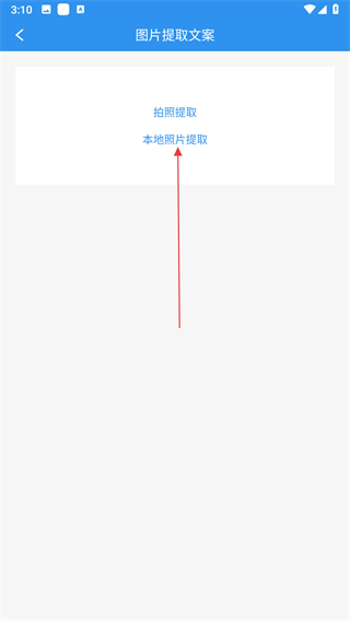 2、在圖片提取文案頁面,找到并點擊選擇本地照片提取選項。