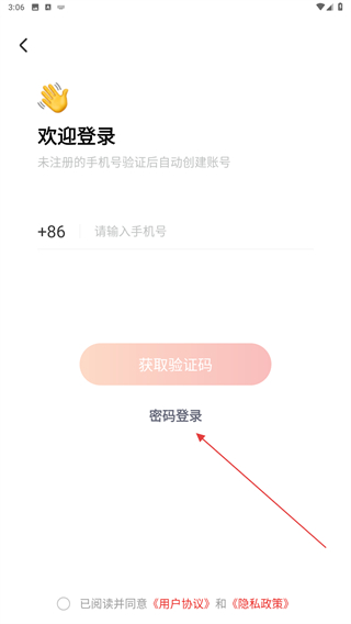 2、進(jìn)入登錄的頁(yè)面內(nèi),點(diǎn)擊下方密碼登錄的按鈕。