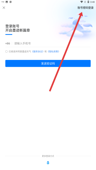 1、在登錄賬號(hào)頁(yè)面,可以點(diǎn)擊賬號(hào)密碼登錄按鈕,切換登錄的方式。