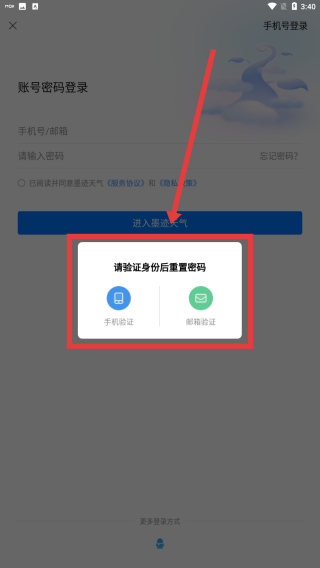 3、在彈出的窗口中,可以點(diǎn)擊選擇手機(jī)驗(yàn)證或者郵箱驗(yàn)證的方式找回密碼。