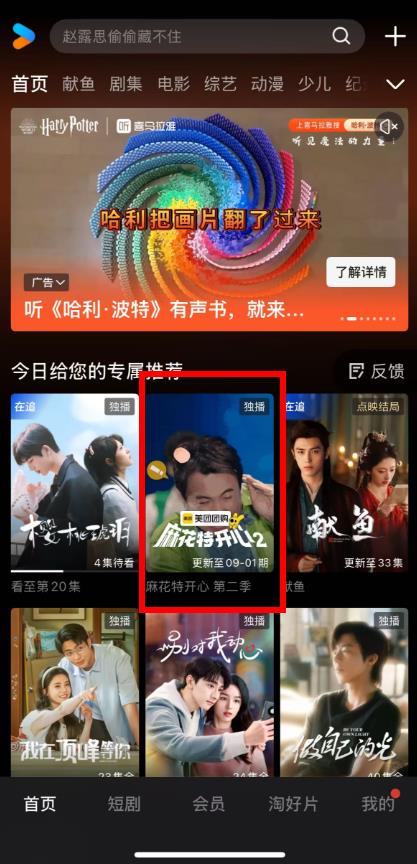 1、打開優(yōu)酷首頁,找到想緩存的電視劇,如麻花特開心第二季。