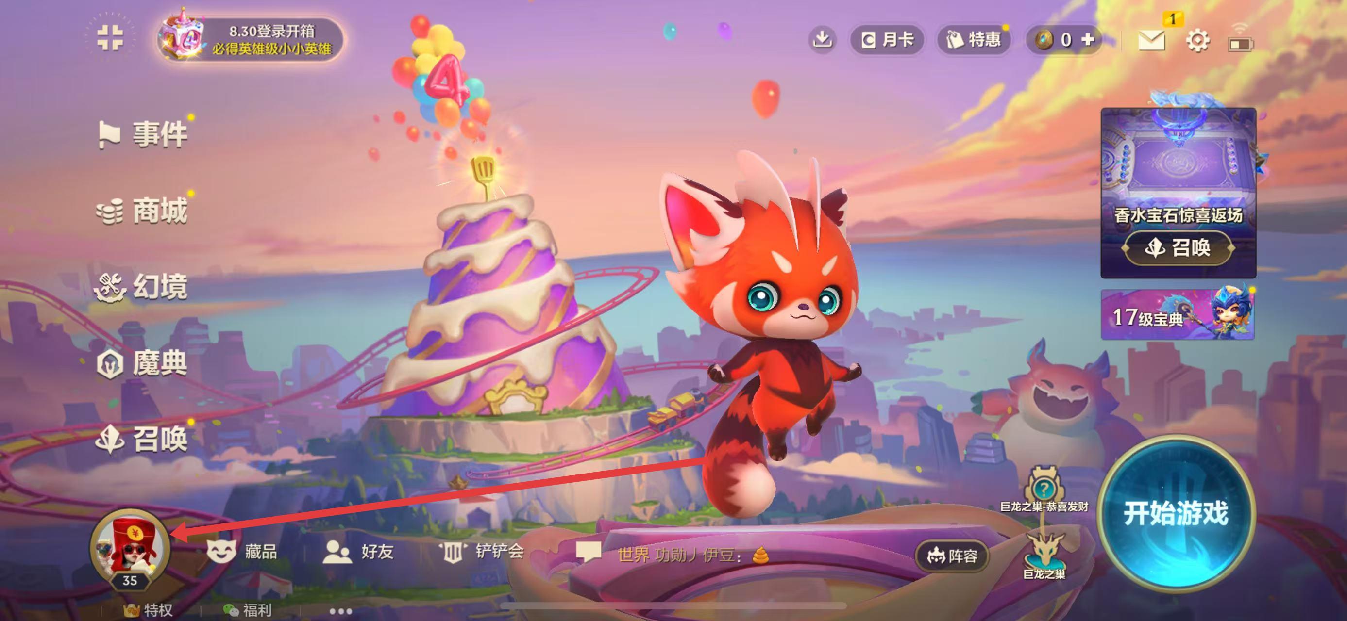 1、打開金鏟鏟之戰(zhàn)游戲,進(jìn)入主界面,點(diǎn)擊左下角的個人頭像,進(jìn)入生涯界面。
