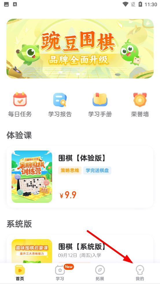 1、打開豌豆圍棋軟件點(diǎn)擊底部導(dǎo)航欄中我的圖標(biāo)進(jìn)入相關(guān)頁面。