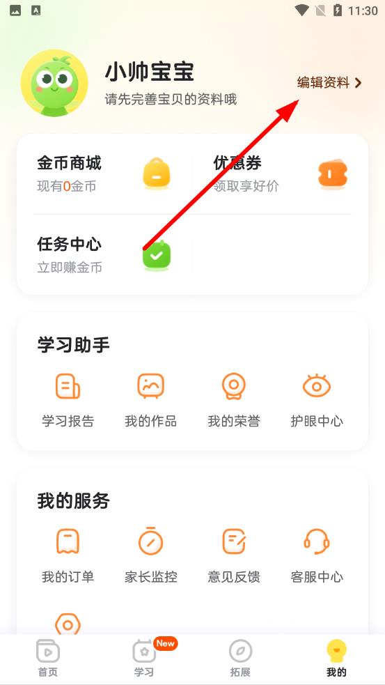 2、在我的頁面中點(diǎn)擊頭像右側(cè)的編輯資料選項,進(jìn)入資料編輯流程。