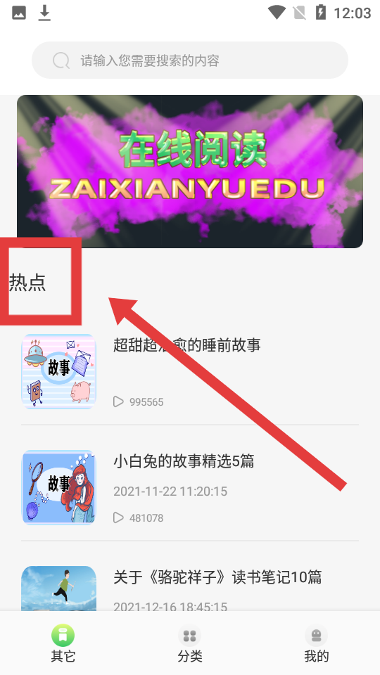 1、打開(kāi)柚子閱讀APP,在首頁(yè)找到熱點(diǎn)區(qū)域,可以瀏覽系統(tǒng)當(dāng)前推薦的熱門(mén)閱讀內(nèi)容。