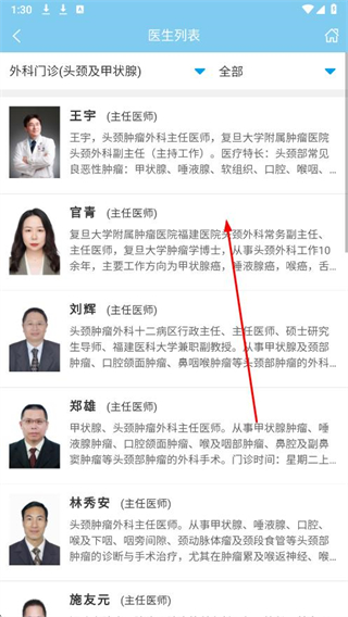 3、在醫(yī)生列表頁面,選擇想要掛號(hào)的醫(yī)生。