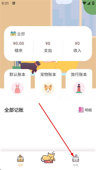2、進(jìn)入主界面后,找到并點(diǎn)擊導(dǎo)航欄中的存錢選項(xiàng)。