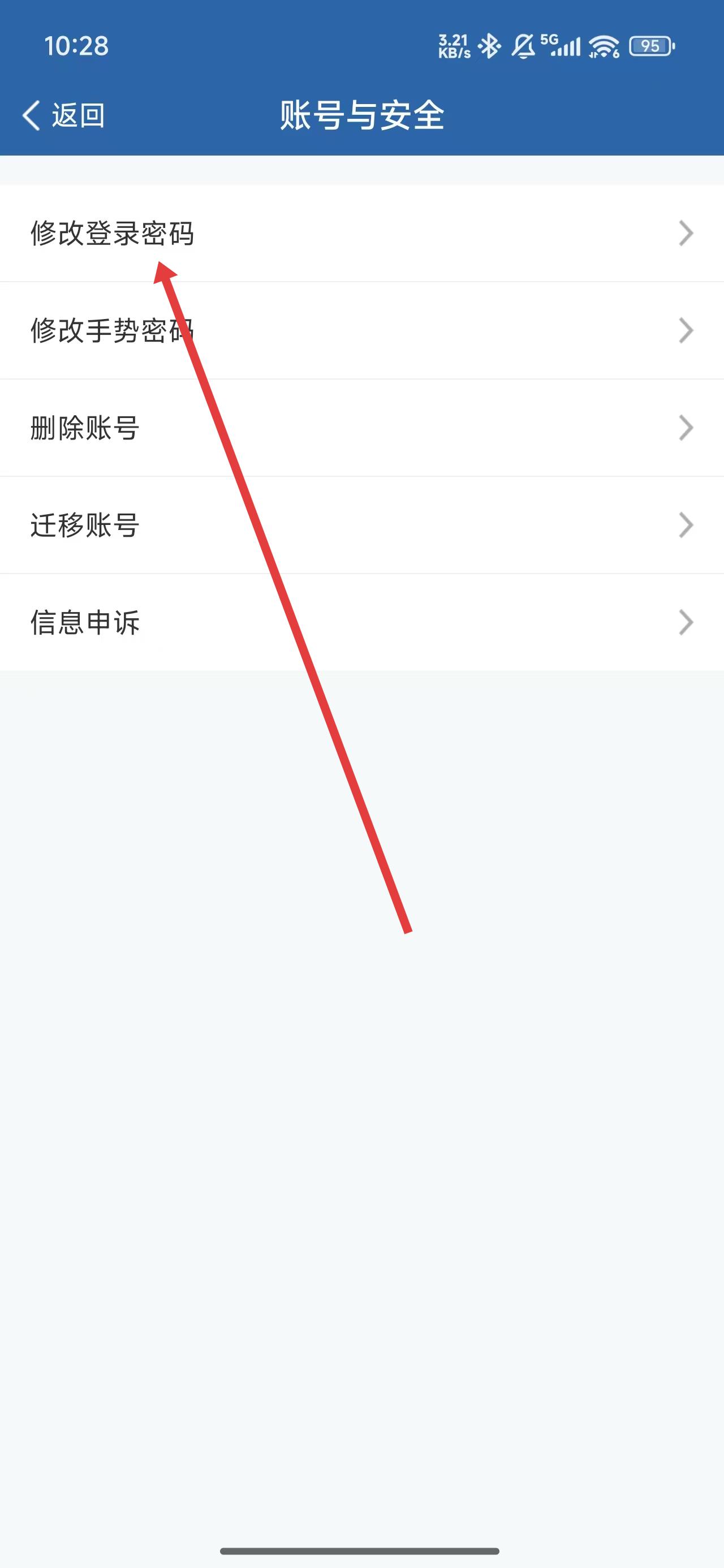 3、在賬號與安全下,找到修改登錄密碼選項(xiàng),點(diǎn)擊進(jìn)行修改操作。