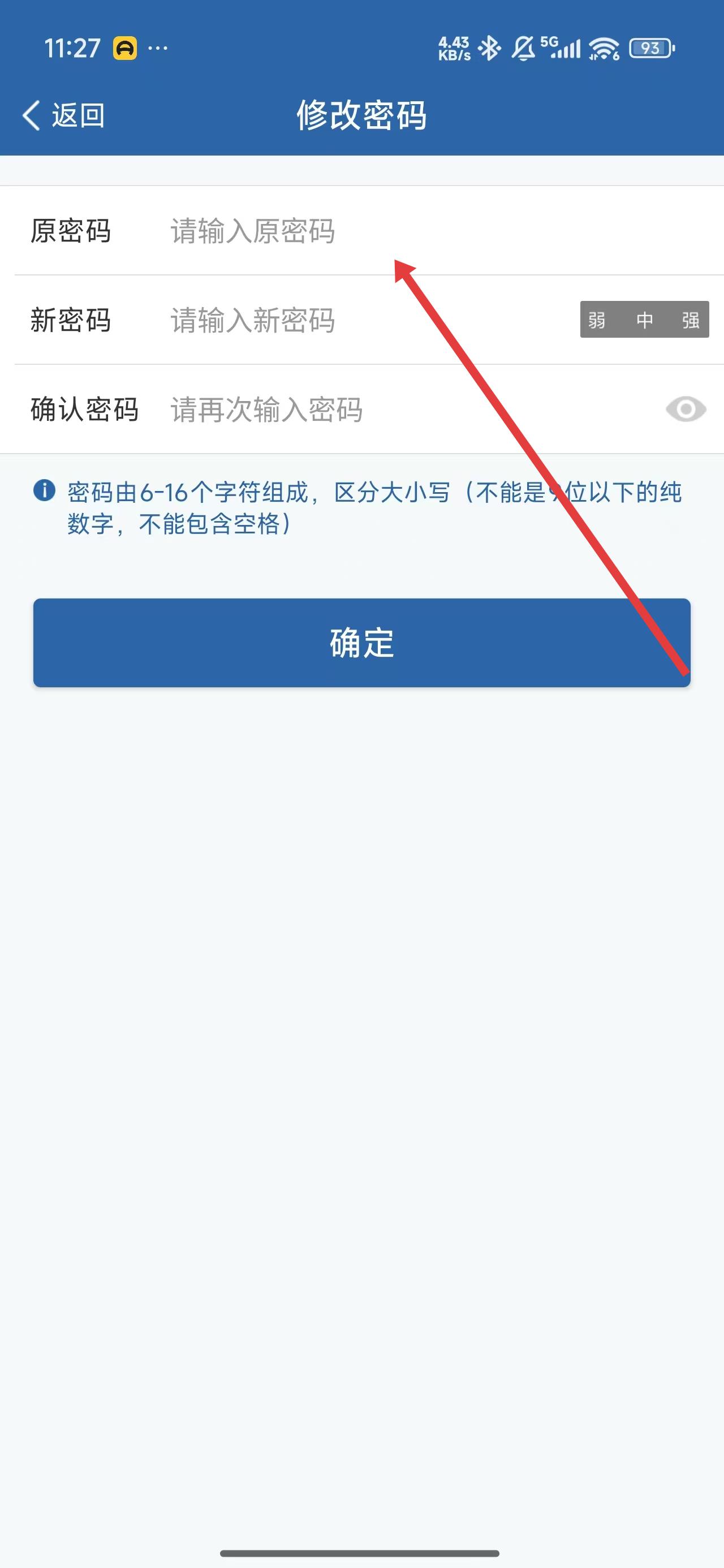 4、在進(jìn)入到修改密碼頁面后,依次輸入原密碼新密碼,完成修改操作。