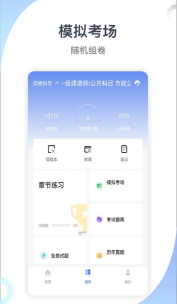 建造師考試寶典有著海量的題庫等著用戶來進(jìn)行練習(xí),建造師考試寶典能夠根據(jù)用戶在題庫當(dāng)中所做的錯(cuò)題來進(jìn)行針對(duì)性的復(fù)習(xí)。軟件根據(jù)艾賓浩斯記憶學(xué)習(xí)方法設(shè)計(jì)學(xué)習(xí)內(nèi)容,它能夠?yàn)橛脩羰詹乇∪踉囶}。軟件擁有章節(jié)練習(xí)、歷年試題、考前沖刺題。