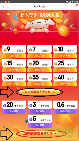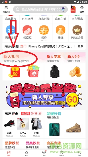 一、在京東首頁即可點(diǎn)擊“新人禮包”,如下圖: