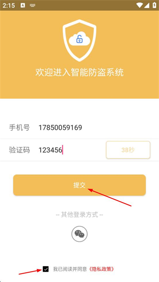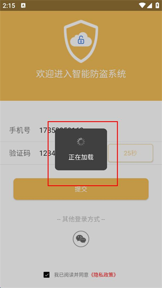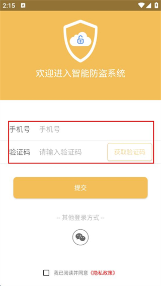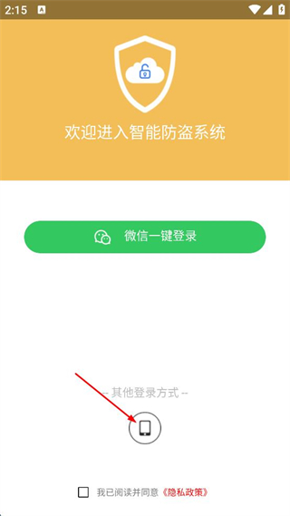 1、打開(kāi)智能防盜系統(tǒng),點(diǎn)擊其他登錄方式下的手機(jī)圖標(biāo)。