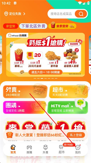 1、打開mfood app,點(diǎn)擊底部導(dǎo)航欄最右側(cè)我的選項(xiàng)。