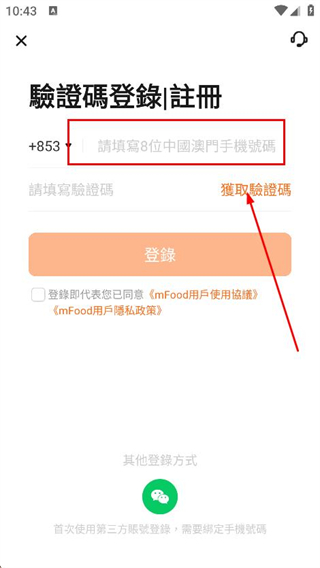 3、在輸入框中填寫需要登錄的手機(jī)號碼,并點(diǎn)擊獲取驗(yàn)證碼。