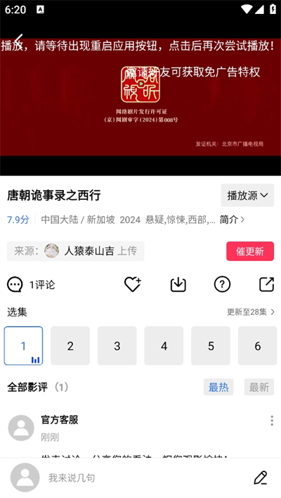 4、點擊影視后即可直接進入,并可以查看到播放源、影視介紹等,還能自己選集觀看。