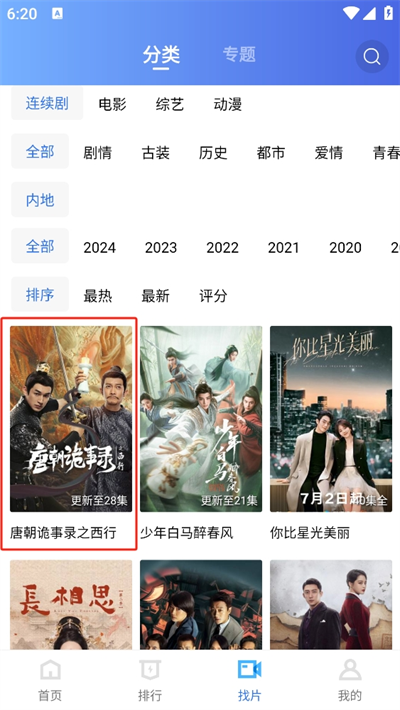 3、從中可以通過篩選找尋喜愛的影視資源,我們以唐朝詭事錄之西行為例;