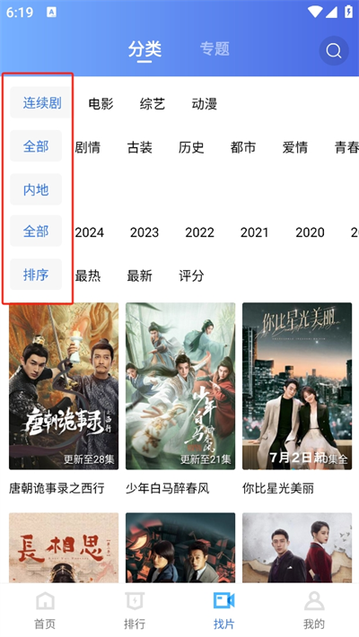 2、在這里可以看到各種影視的分類,根據(jù)條件可以進行篩選找尋影視資源;