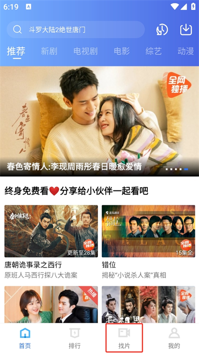 1、進入軟件將會看到各種影視資源比如電視劇、電影、綜藝、動漫等,我們選擇最下方的找片;