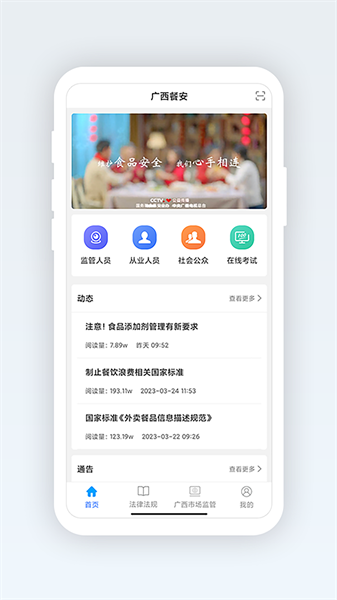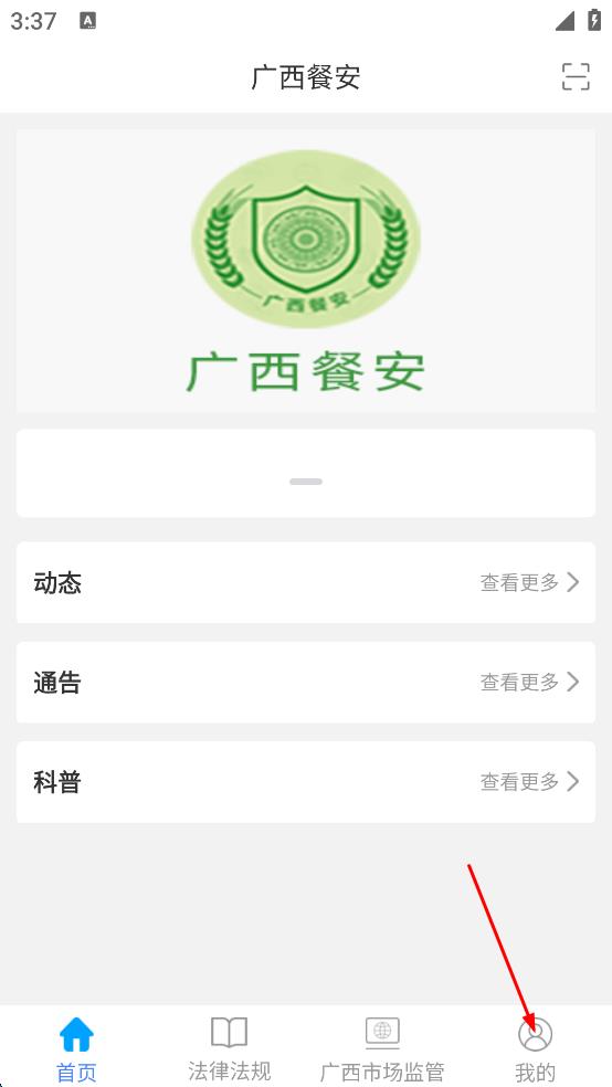 4、完成上述操作后,點(diǎn)擊“登錄”,即可登錄廣西餐安App,后續(xù)可在應(yīng)用內(nèi)進(jìn)行相關(guān)餐安培訓(xùn)等操作。