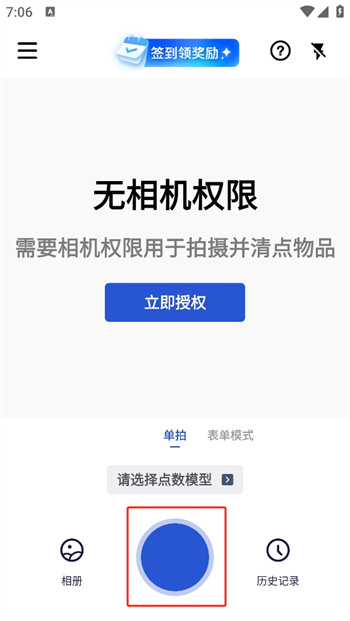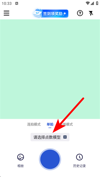 1、打開點(diǎn)數(shù)相機(jī)APP,點(diǎn)擊請(qǐng)選擇點(diǎn)數(shù)模型選項(xiàng)。