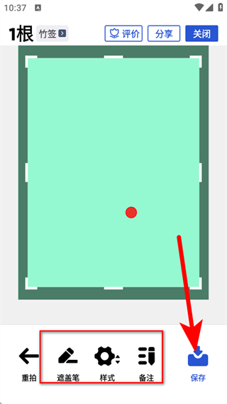 4、拍攝完成后,可對(duì)點(diǎn)數(shù)結(jié)果進(jìn)行重拍、調(diào)整遮蓋筆、樣式、添加備注等操作,最后點(diǎn)擊保存按鈕,保存點(diǎn)數(shù)結(jié)果。