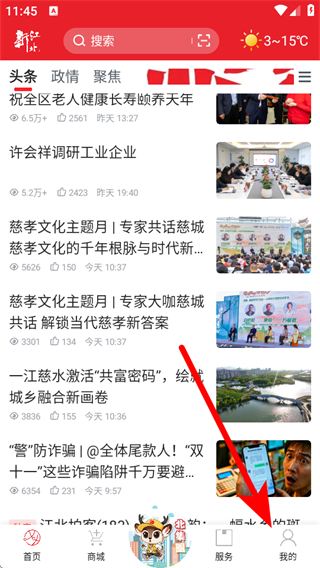 1、打開新江北APP,點(diǎn)擊底部導(dǎo)航欄的我的,進(jìn)入個人頁面。