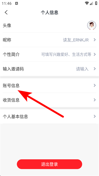 3、在個人信息的界面,點(diǎn)擊賬號信息選項,進(jìn)入賬號信息頁面。