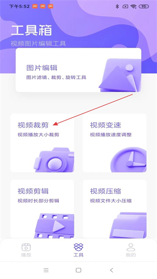 2、進入工具箱的界面內(nèi),點擊視頻裁剪的功能按鈕。