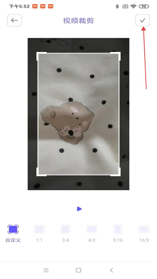 4、進入該頁面內(nèi),裁剪合適的大小后點擊打鉤的按鈕即可。