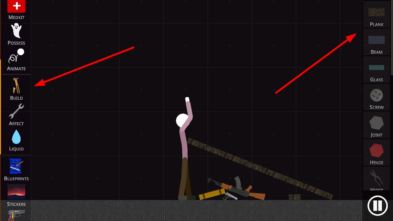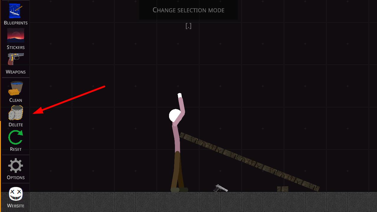 3、點擊左側(cè)功能欄的DELETE刪除功能,點擊場景中的木板、手槍等物品可以直接刪除。