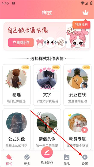 1、打開情侶頭像制作,點擊底部導(dǎo)航欄設(shè)置選項。