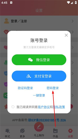 3、在賬號登錄頁面,選擇并點擊密碼登錄選項。