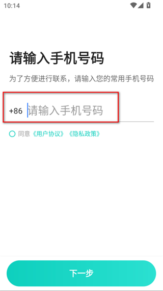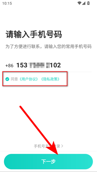 2、在手機(jī)號輸入框中輸入手機(jī)號碼,勾選同意用戶協(xié)議隱私政策。