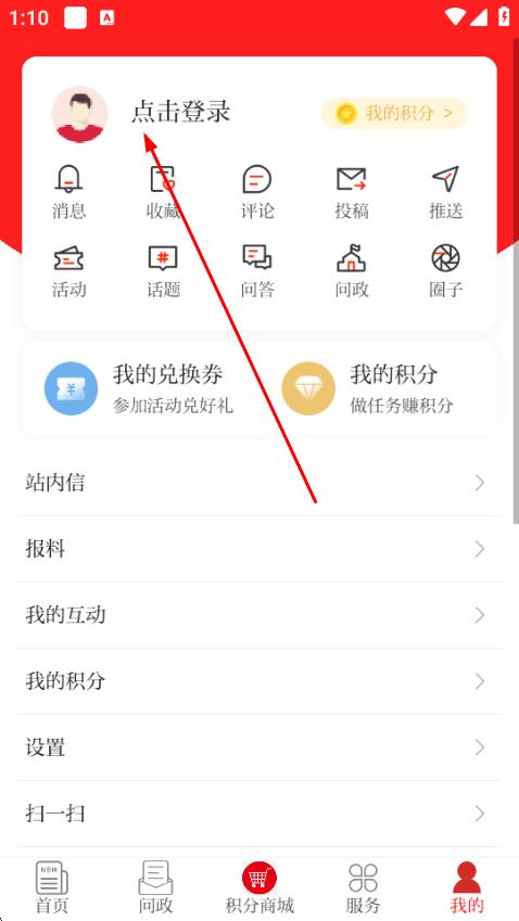 2、進(jìn)入我的頁(yè)面后,點(diǎn)擊點(diǎn)擊登錄選項(xiàng)。